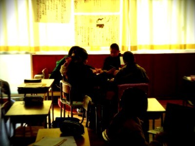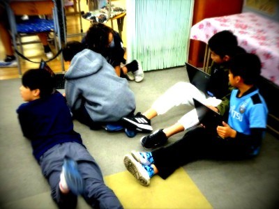 クラスの中で、それぞれの発表の仕方にわかれて協力して取り組んでいます。