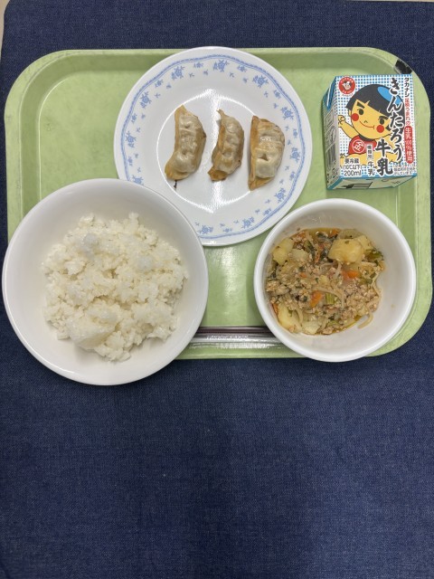 【今日の献立】 焼き餃子 ご飯 韓国風肉じゃが 牛乳