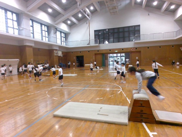 2年生は体育で跳び箱を行いました。子どもたちは、自分ができる技で気持ちよく跳ぶこと、もう少しでできそうな技にチャレンジするというめあてを立てて取り組みました。学習が進む中で子どもたちは、今までよりもきれいに跳べるようになったり、できなかった技に成功したりと、達成感を味わうことができました。また、「〇〇さんの跳び方がきれいだったよ」や「やったー跳べた!」などの声も聞こえてきており、楽しく意欲的に学習に取り組めたようです。