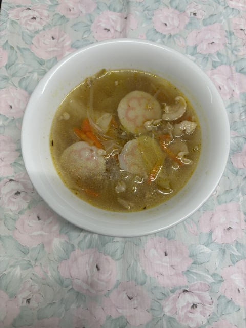 梅丸ラーメンは、鰹節でだしをとり、豚肉、野菜、小田原の梅干しの入った地産地消メニューです。だしと梅干しでさっぱりしていて三の丸小学校で人気のメニューです。