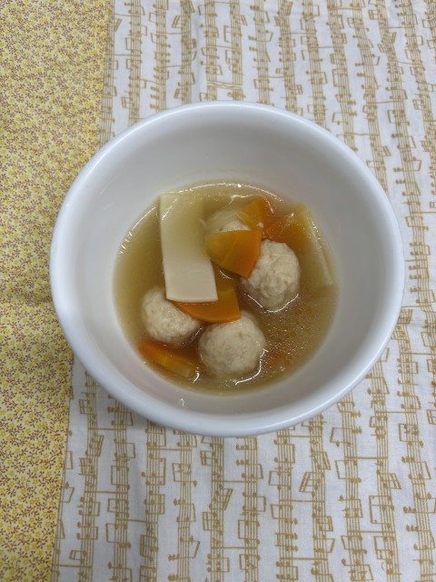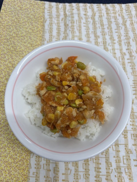 【今日の献立】 チキンライス 肉団子入りスープ 牛乳