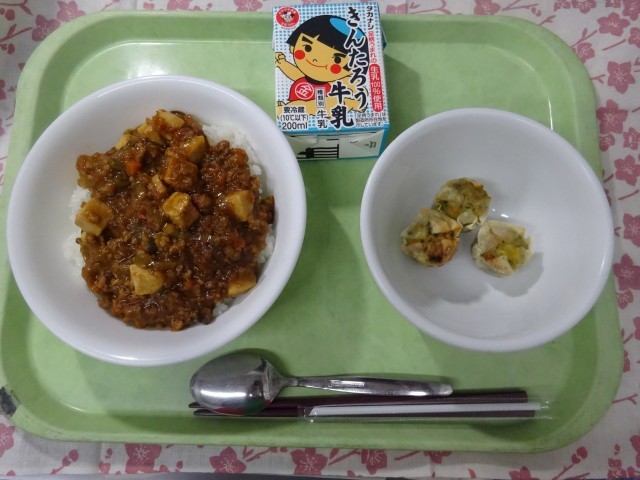 マーボー豆腐どんぶり 牛乳 焼きしゅうまい