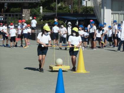 いよいよ10月15日に実施予定の運動会の練習が始まりました。なかよし班選択種目である「なかよし6」は、今年も「だるま運び」「ぐるぐるタイフー」「おさるのかごや」「バランスボール運び」「魔法のじゅうたん」「バウンド玉入れ」の6種目からの選択で競います。2週間前から6年生を中心に参加種目の決定作業が進み、今日から本格的な練習が始まりました。なかよし班で協力し、和やかに練習が進んでいました。
