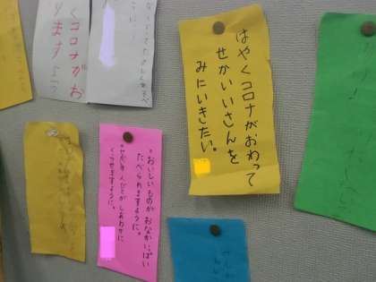 さて、7月7日は七夕ですね。2年生の教室に、願い事が書かれた、かわいらしい短冊を見つけました。本校の図書室「コスモス」にも、図書ボランティアさんが作ってくださった願い事の短冊を貼る掲示板がありました。伝統的な行事は、日本人らしい心を育む絶好の機会ですね。