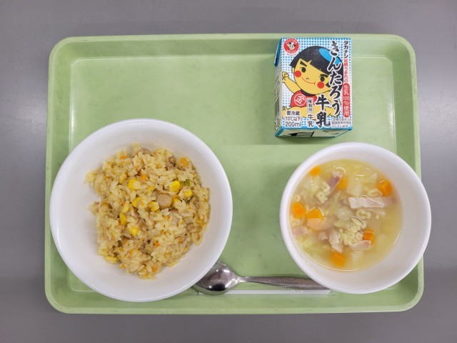 今日の献立は、牛乳・ピラフ・ABCスープです。