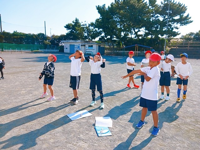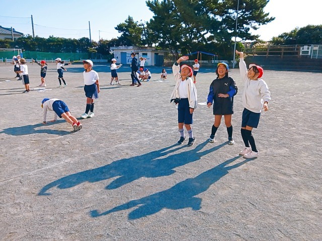 理科のかげの実験で運動場に出ています。「ひとつ・ふたつ・みっつ・・・・とお。」の声が聞こえてきます。3年生は国語で「ちいちゃんのかげおくり」の学習をしているので、グループの人と試しています。天気が良く「できた。」「空に白く見えた!」の声が聞かれました。