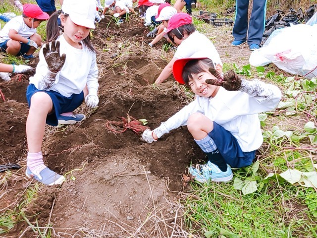 子供たちはいもが見え始めるとさらに頑張ってほり、掘り起こして手に取ったときは本当に嬉しそうでした。