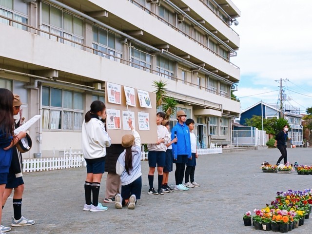 環境美化委委員会の児童の司会のもと、植え方の説明がありました。育成会の会長会からもご挨拶いただきました。パンジーの花言葉のようにしっかり花を見て世話をしていきたいですね。
