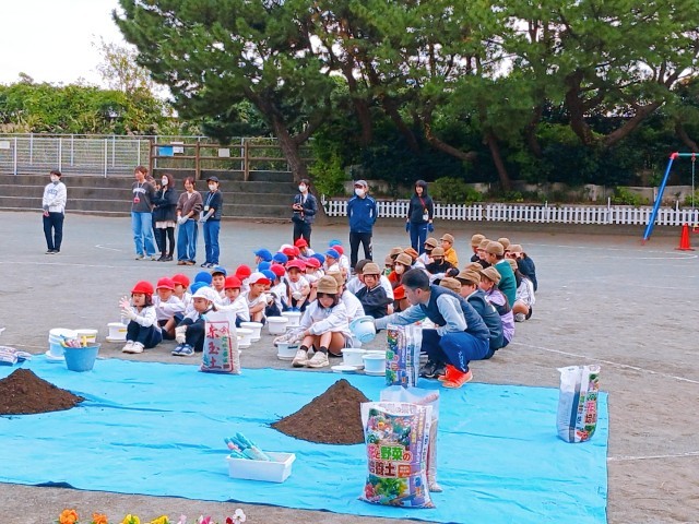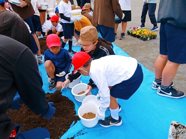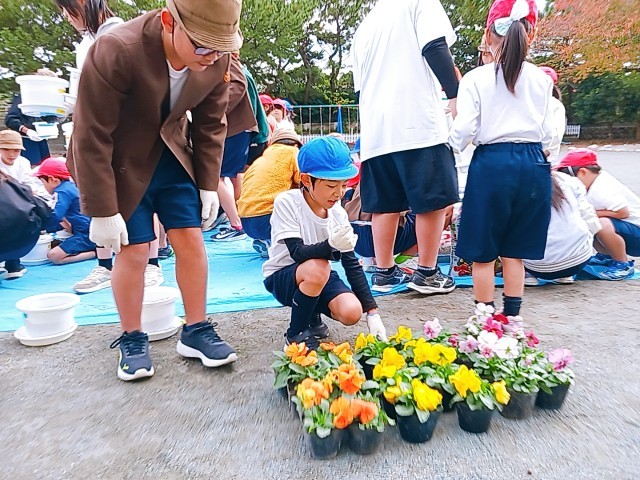花を植えているときに、6年生は1年生に教えながらやさしく関わる様子が多く見られました。