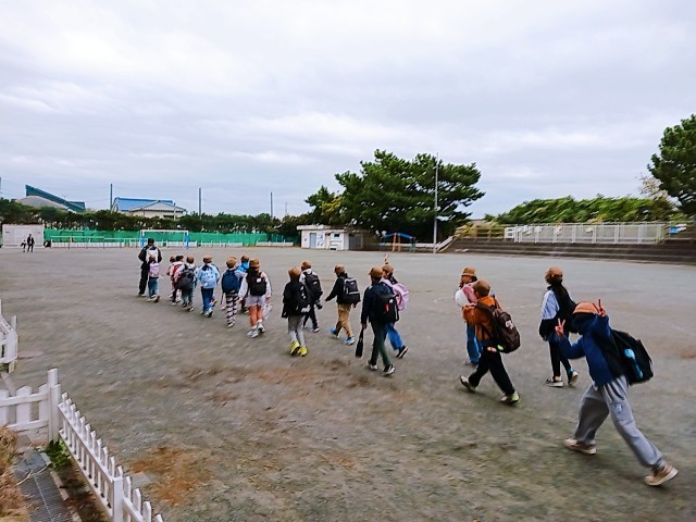 川村小学校との交流会・尊徳記念館の見学に行きます。肌寒い朝ですが、子供たちは元気いっぱいに「行ってきます!」のあいさつをして出発しました。