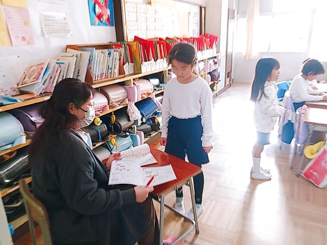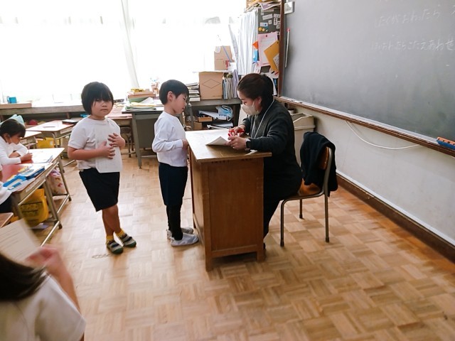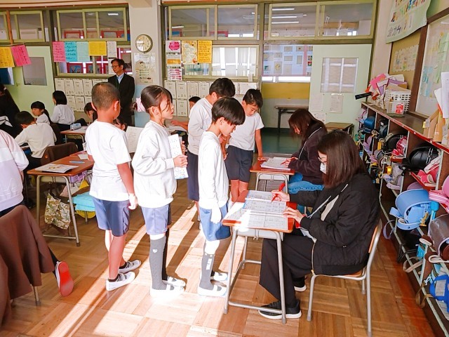 朝の時間は算数タイムで、ボランティアの方が丸付けを行ってくださいました。