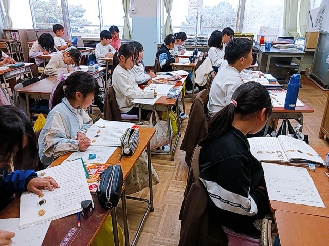 国語「すがたをかえる大豆」の学習です。教科書を読んで、大豆をおいしく食べる工夫や何の食品について書いているのか、読み取っています。