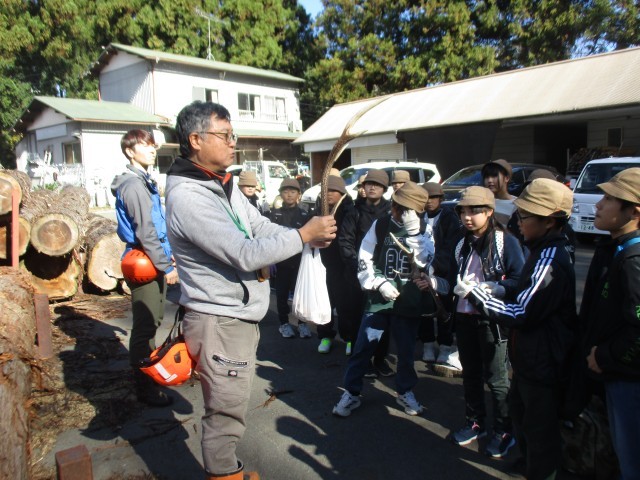 晴天に恵まれた本日、5年生は朝からマイクロバス2台に分乗し、小田原市いこいの森へ向かいました。現地では森林組合の方々が、チェーンソーで木を切る様子や木の活用、森林にある草木の特徴などを教えてくださいました。ご家庭でも話題にいしていただき、小田原の木材に親しんでいただけたらと思います。
