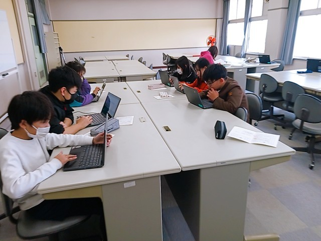 パソコンクラブは、みんなが作ったゲームでゲーム大会を行います。最終調整を行い、皆真剣な表情で取り組んでいます。
