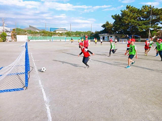 屋外スポーツはサッカーです。今年度購入した折り畳み式のサッカーゴールのお披露目です。