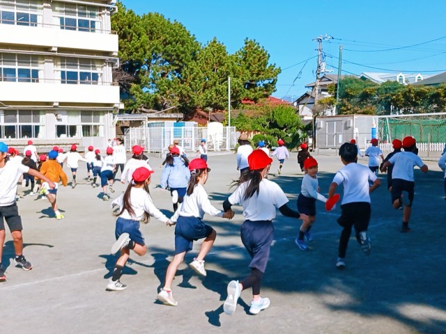 中休みに体育委員会を中心に児童集会を行いました。自由参加でしたが、ほぼ全員が参加して氷鬼を楽しみました。各学年4人が鬼になり始まりました。途中から先生方も鬼に加わり、盛り上がりました。
