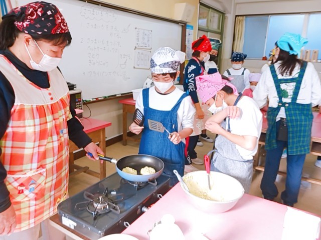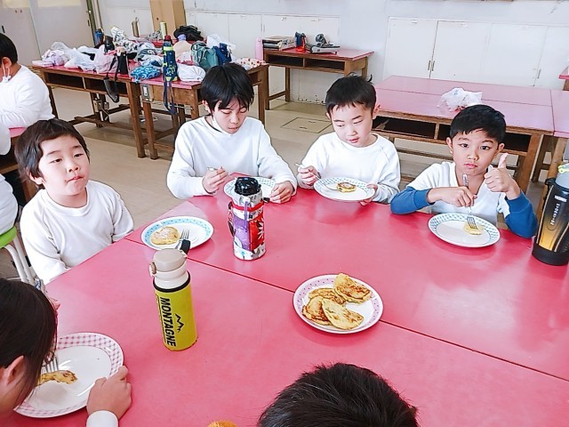 フライパンで焼いて出来上がりです。みんなで協力して取り組みました。