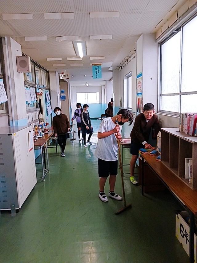 1・5・6年生は、靴箱掃除や自分たちが使ったところを掃除していました。