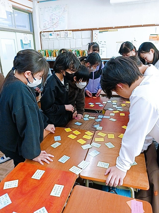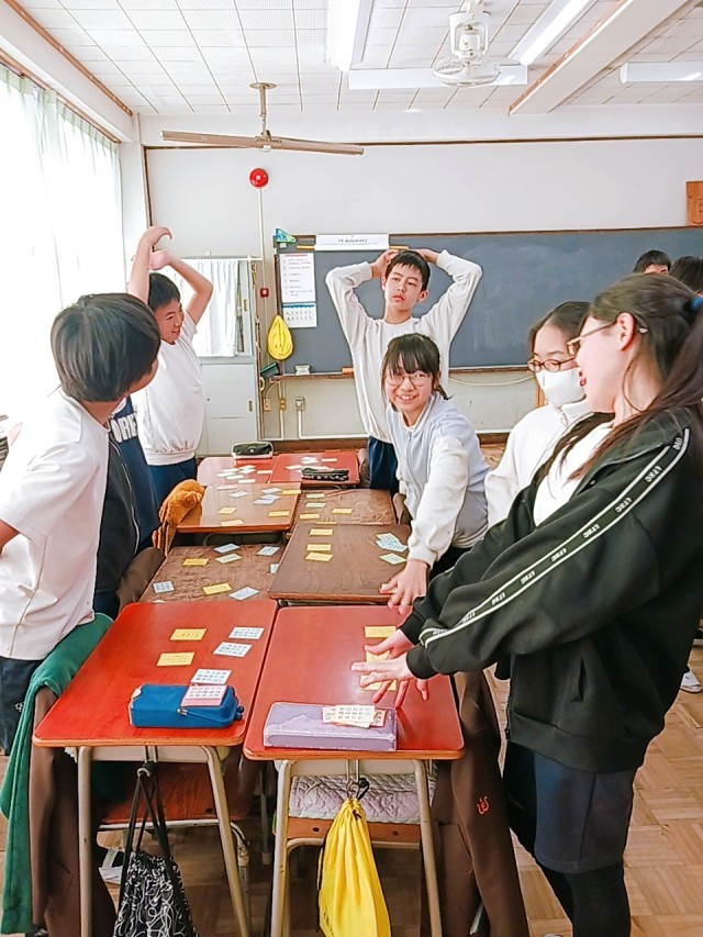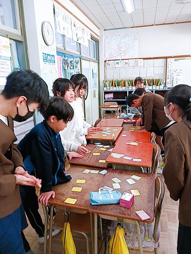 3年生は、今年の目標を書いた後、すごろくを楽しんでいます。