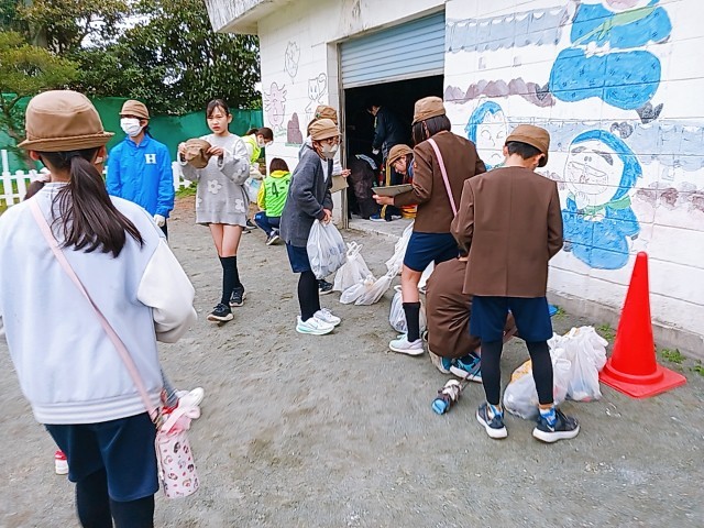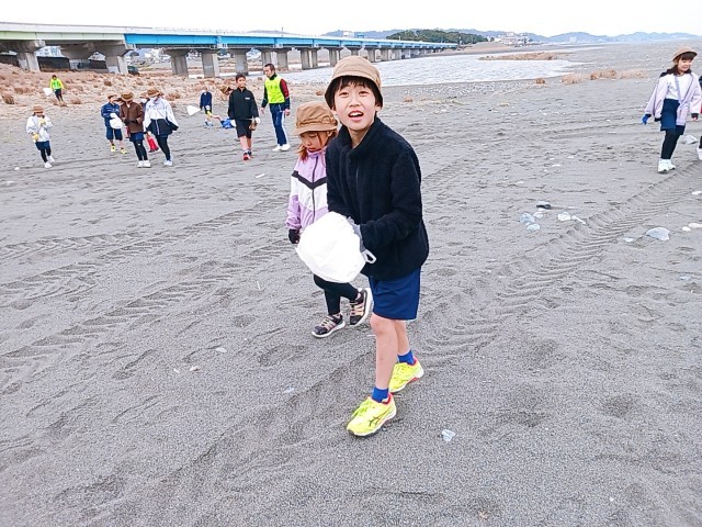 3・4年生は、1年間の活動についてペアの友達と振り返りながら、ごみ拾いを始めました。ごみは比較的少なかったですが、ペアで仲良く活動する様子が見られました。