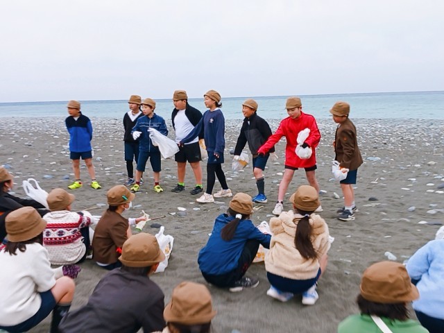 3・4年生で、海岸清掃後に唄った木遣り歌は、気持ちがよかったですね。