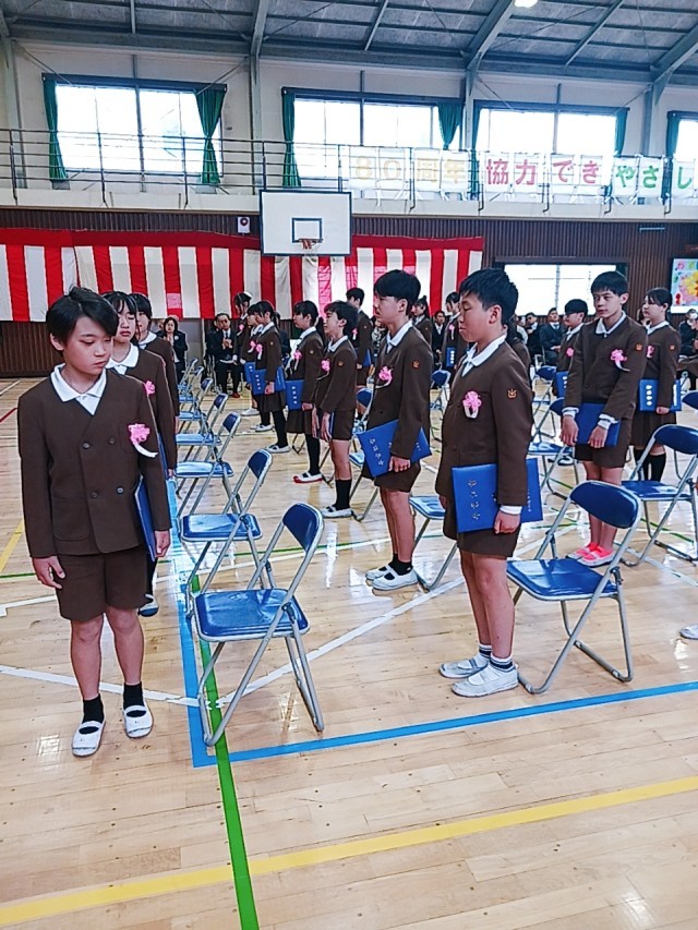 卒業生は、卒業証書を受け取る前に一人一人が、6年間の思い出や家族・友達・教師・地域の方々に対する感謝や中学校生活での決意などを立派に伝えることができました。