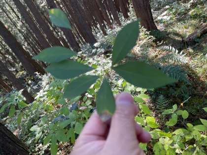 くろもじの歯を噛んでみます。いい香りがします。くろもじは爪楊枝の材料です。