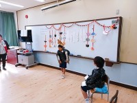 「新しい風」と書きました。書き終わると満足している顔、ちょっと不満そうな顔いろいろありますが、書いているときはみんな真剣、気持ちがこもっています。