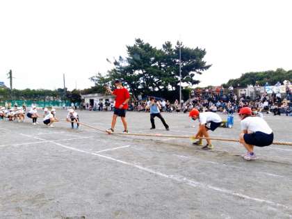 3年ぶりの綱引きです。1チーム18人と少ない人数で密にならないように工夫しています。