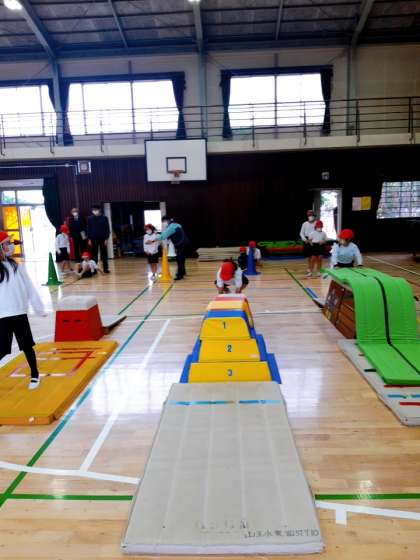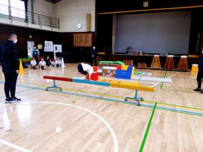 平均台や跳び箱を使った運動にもチャレンジしました。