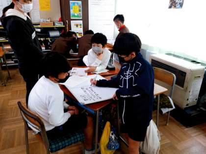 日本の食品ロスの現状を知ったり、世界の食料不足の動画を視聴したりしました。その後、食品ロスを減らすために自分ができることを考え、グループで話し合い発表しました。