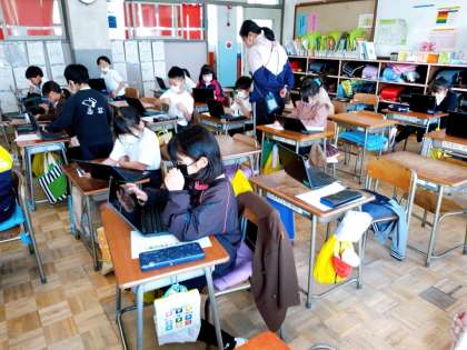 2年生が、図工展のウエブ鑑賞をしています。良かったことや気に入った