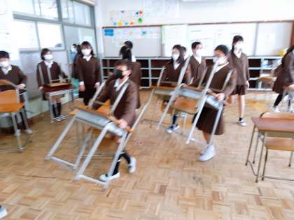 新年度に向け、4、5年生が、机や椅子の移動を行いました。