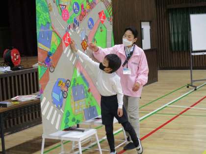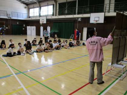 2時間目は3年生が体育館でDVD視聴や、街の絵のパネルを用いて危険な場所とどうしたらよいかなどの確認を行いました。実際の場面を思い浮かべて活発に意見を発表していました。
