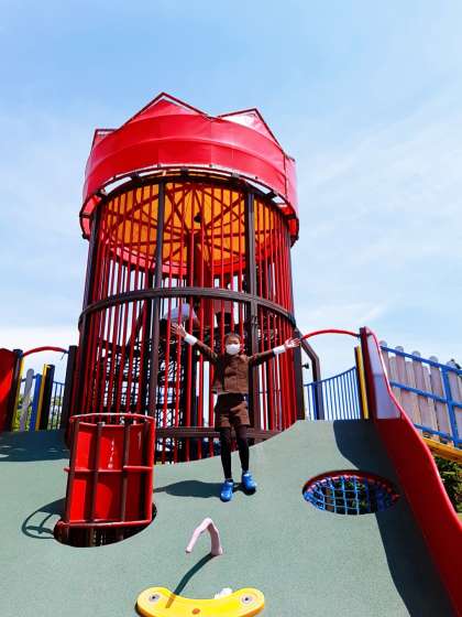 昼食を食べ終えた人からちびっこ広場で遊びました。短い時間でしたが、体を動かせて気持ちよさそうです。