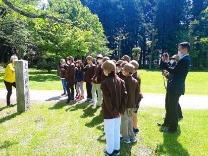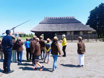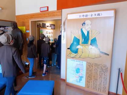 記念館の外にある桜町前陣屋後を見るグループと資料館で尊徳翁の偉業にについて学ぶグループに分かれて見学しました。