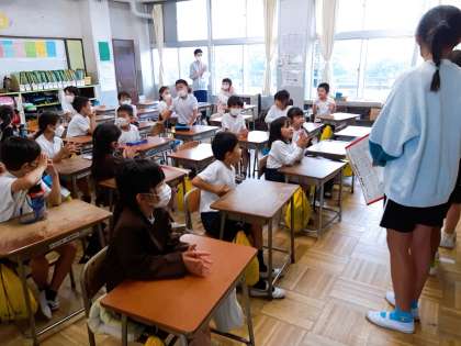 6年生が中心に進め、始めに自己紹介をしました。学年・名前・好きなものなどを言い終えると温かい拍手が送られていました。