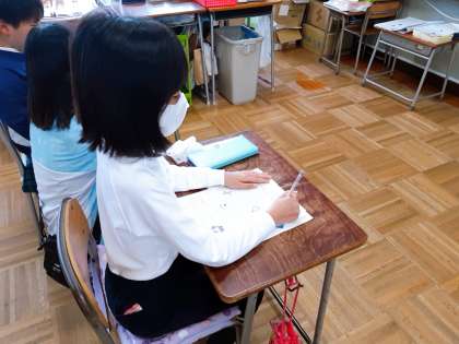 2校時に4年生が、キーワードゲームや動物マンションゲームをしながら聞き取り名人をめざして学習しました。