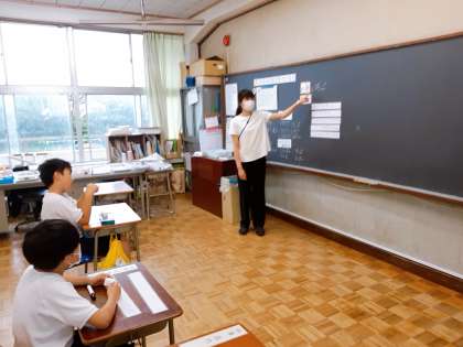 しりとりゲームに楽しく取り組んでいます。