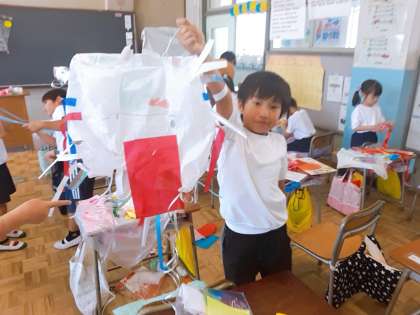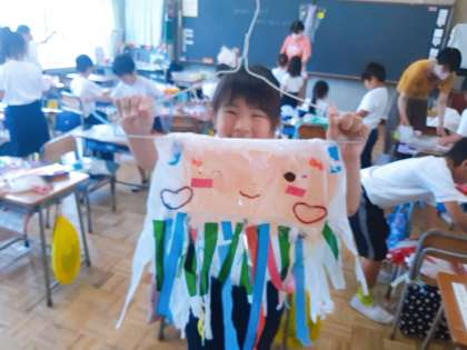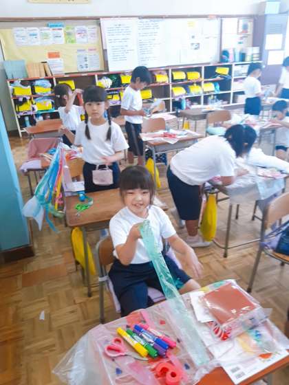 3・4校時は、図工です。「ひらひら ゆれて」の学習で、風などに揺れるきれいな飾り作りをしました。