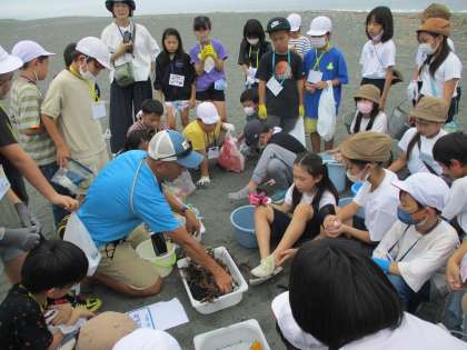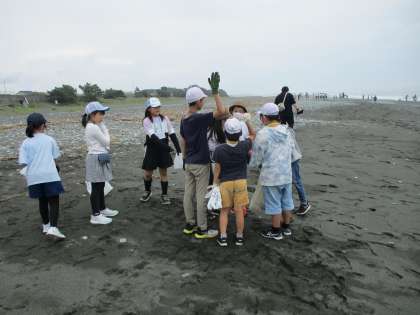 海でビーチコーミングをしました。みんなでいろいろなものを拾いました。