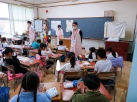 1年生の鯉のぼりが今日はよく泳いでいます。昨日、5年生ががんばって雑草を取り除いた田んぼの代掻(しろか)きが終わりました。