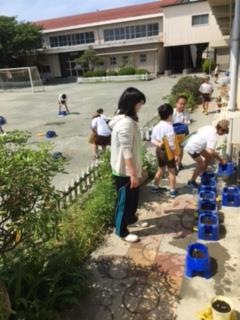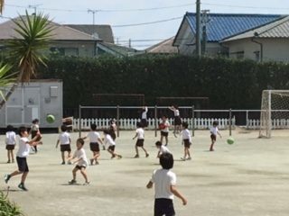 山王っ子は今日も元気です。1時間目、3年生はマリーゴールドに水やりをして観察の結果を記録していました。6年生は鉄棒です。中休み、今日はグラウンドの東側を写してみました。