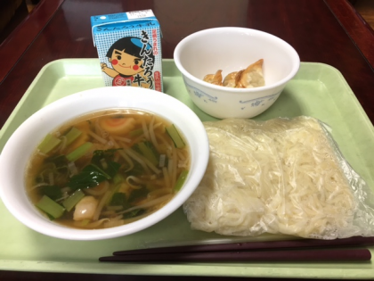 今日の献立は “ ぎゅうにゅう かくにらーめん やきぎょうざ ” です。