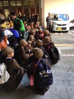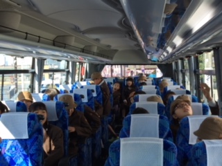 バスで東高校前を出発して市民会館に着きました。いつも以上に男子が興奮気味です。午後の一番なので大丈夫でしょうか?
