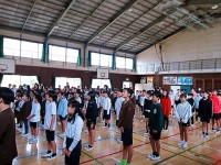 1年生が栽培しているチューリプの観察記録が掲示されていました。教室前の廊下には「いっしょにおさんぽ」という油土による作品が展示されていました。
