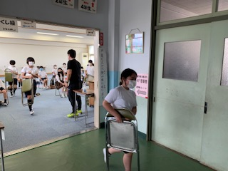 3年生は今回も体育館です。4年生は人数が少ないので教室。5年生はこれからもしばらく使う音楽室です。