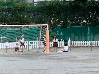 実験では、水を流したらグランドでどのように流れていくかなどを確認するのですが、雨の日に上から見ると水の流れ道がよくわかったのになー・・・・。