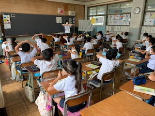 2時間目は書写です。最初に書写の体操、そして教科書で練習、プリントという流れです。でも教科書を忘れた人が何人かいます。毎週金曜日に「おたより」を配り、土曜日の夕方までにはホームページに「おたより」をアップしています。少しでも忘れ物が減るようにご家庭でも前日の準備にご協力ください。