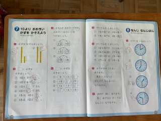 1年生は算数です。数字の大きさ・順番を学んでいます。